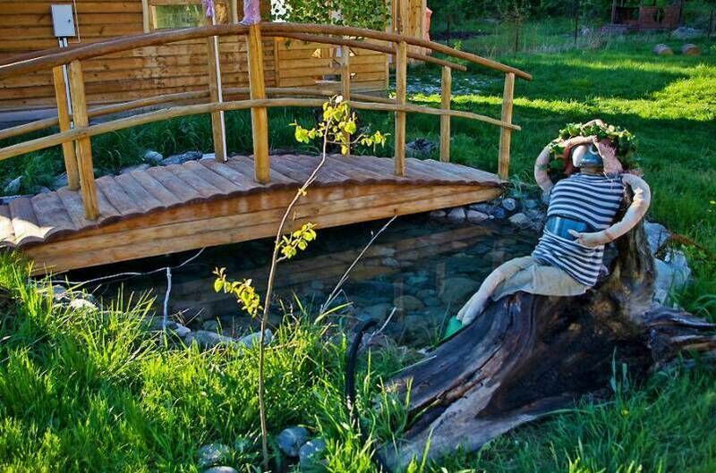- Небольшая веранда со столиком и скамейкой тоже ручной работы.