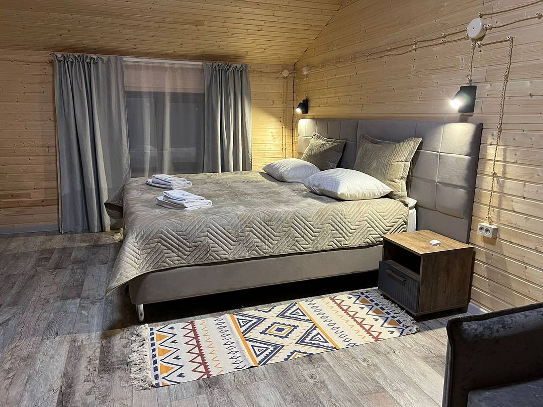 Номер в отдельном доме из бруса, состоящий из одной жилой комнаты с одной кроватью, с полным санузлом, расcчитан на проживание одного\двух человек.