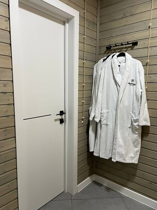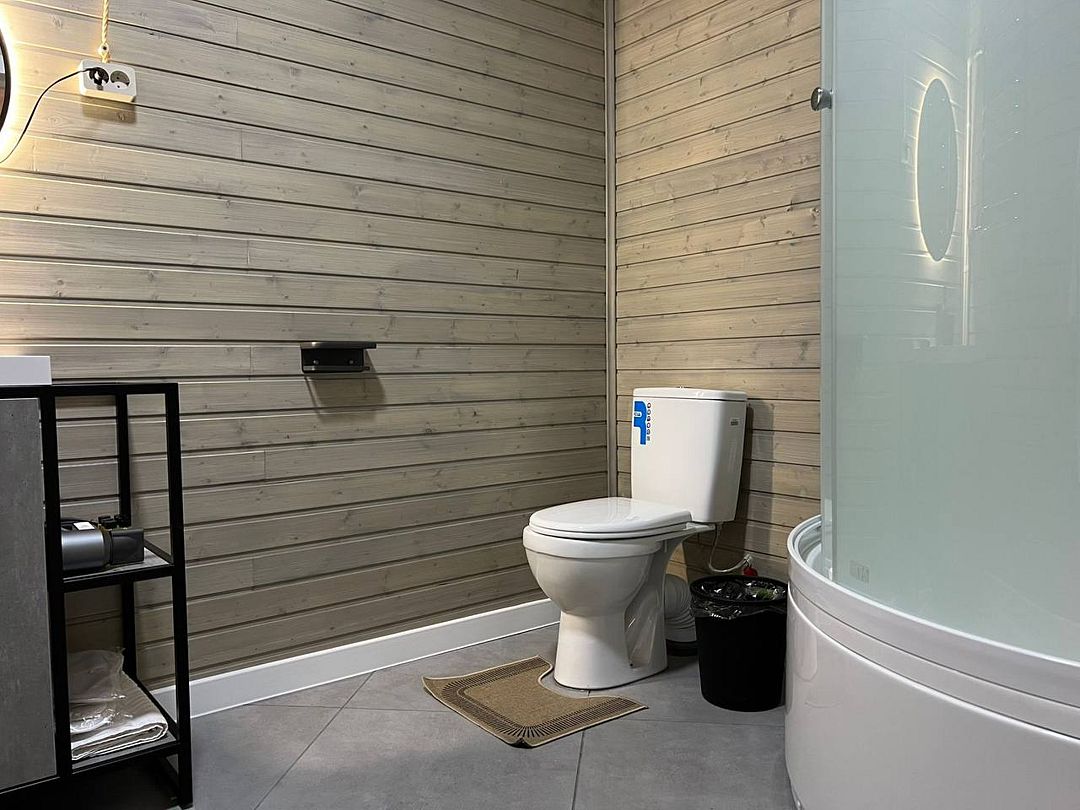 Туалетная комната с душевой кабиной укомплектована полотенцами, феном, мини-парфюмерией, халатами и тапочками.