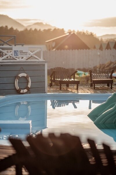 июль 2020 г.Были на этой базе всей семьей 7 НОЧЕЙ.Были на этой базе всей семьей 7 НОЧЕЙ. База очень понравилась, особенно дочке. На самом деле база для детей, бассейн с горками не глубокий, батут надувной, мастер-классы для детей. У нас был номер студия, для троих вполне нормальный, есть маленькая кухня, холодильник, микроволновка, чайник и посуда. Номера теплые, даже когда ночью был ливень, в домике тепло.