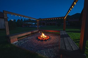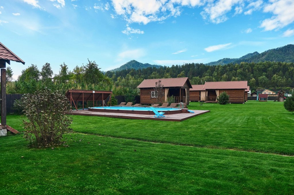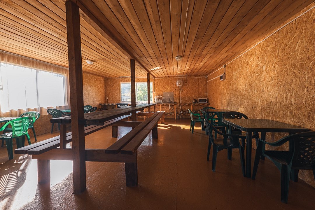 Инфраструктура базы включает бассейн с зоной отдыха, банный комплекс, волейбольную и детскую площадки, летнюю кухню.