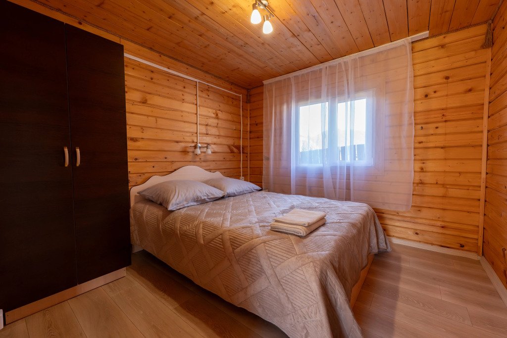 Уютный коттедж с 2 основными и 2 дополнительными спальными местами. Два коттеджа находятся под одной крышей с входом с противоположной стороны. Комната с большой двуспальной кроватью и диваном-кроватью, прихожая, санузел с душевой кабиной, холодная и горячая вода круглосуточно. Современные удобства: холодильник, чайник, чайная пара, телевизор с плоским экраном.