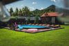 Бассейн 6*10, оборудованный зоной отдыха и лежаками.