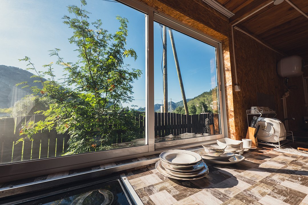 База отдыха «Жили-Были» — это солнечная поляна среди гор. Она находится на первой береговой линии реки Катуни, через дорогу от неё. Высокий берег окружён двумя пляжами: каменистым и песчаным.