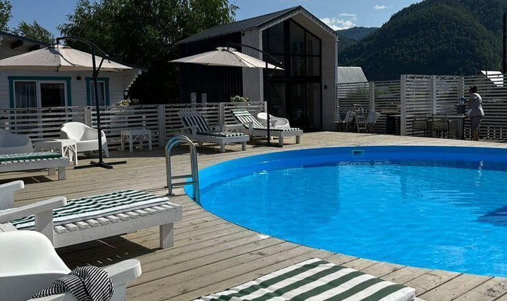 Путешествие с семьейНам всё понравилосьОтдыхали семьёй на данной базе с 05.08.2022 по 10.08.2022.На базе имееться бассейн для взрослых и детей, рядом с бассейном можно полежать на шезлонге совершенно бесплатно, для меня это было удивление что бесплатно, просто привыкла всегда за это платить. Мужу очень понравилась баня которая находиться на территории базы. Так же на территории есть мангальная зона где можно пожарить вечерком бесплатно шашлыки. Номера уютные оборудованы всем что нужно для уютного проживания. Территория убраная уютная продуманно всё до мелочей, мы рады что выбрали именно эту базу и отдохнули на славу. Спасибо думаю мой отзыв будет кому то полезен.