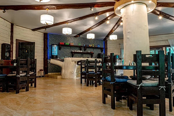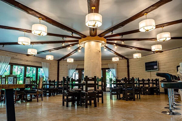 На территории базы расположен отдельно стоящий ресторанный комплекс, состоящий из пяти залов:
