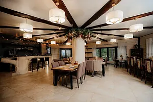 Мы предоставляем уютные домики с удобствами и трансфер. В ресторане вас ждут вкусные блюда местной кухни. Для вашего отдыха подготовлен спортивный зал и баня.