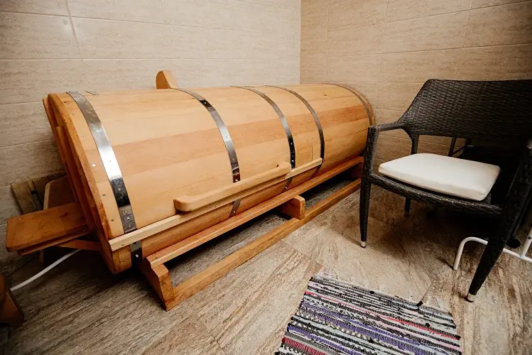 Просторная зона парения и комната отдыха позволят провести отдых на высшем уровне. Также вы можете заказать подогреваемую купель на террасе, чтобы дополнить отдых свежестью горного воздуха. Бронирование возможно за 7 часов до посещения.