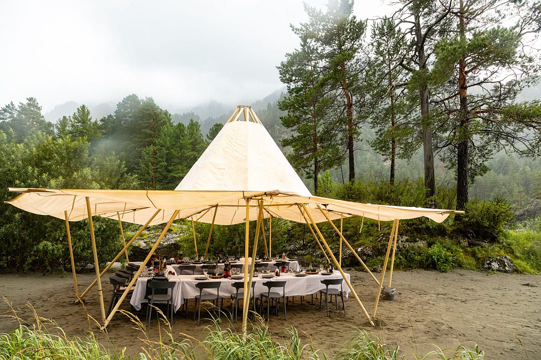 Проведите ваше событие прямо на берегу реки Катунь с видом на Семинские пороги. Уютный вечер дополнит костровище и треск огня. Условия бронирования обсуждаются индивидуально.