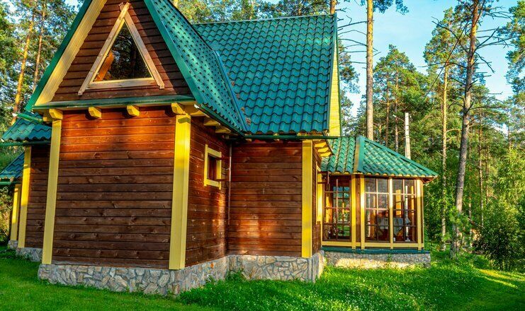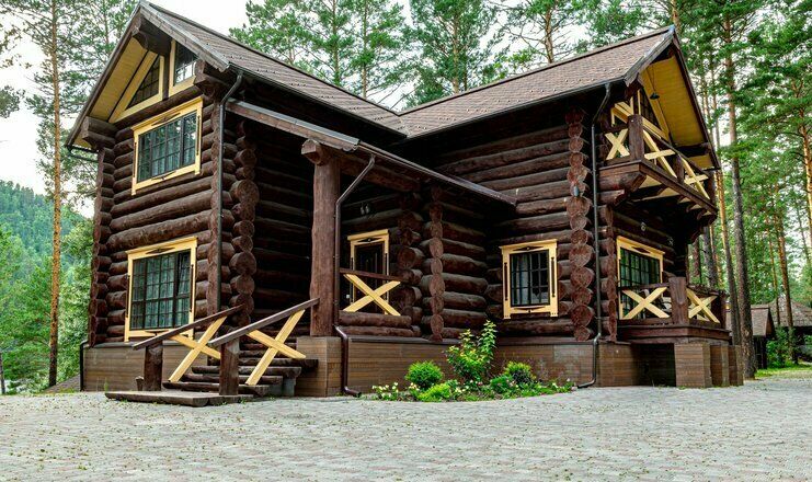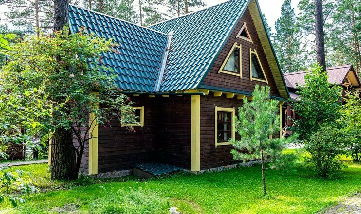 - 6 двухэтажных коттеджей из кедрового бруса. Номера Люкс расположенны на первом этаже.