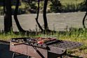 Возле каждого тентхауса есть своя мангальная зона. Вы можете бесплатно взять решетку для приготовления мяса, а за дополнительную плату вы можете приобрести угли и розжиг. Также, можно заказать набор для гриля из нашего пикник-меню в кафе полевой кухни и самостоятельно пожарить мясо или овощи на огне.