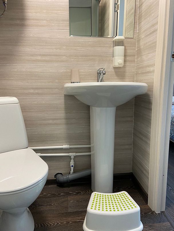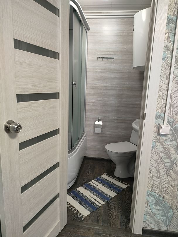 Две кровати (увеличенная 2-х спальная кровать + стандартная односпальная кровать), отличные матрасы, теплые одеяла, мягкие подушки, качественное постельное белье, полотенца для лица и тела, шкаф, сушка для одежды, столик, тумба, обувница, вешалка на входе, санузел (WC + раковина, душевая кабина).