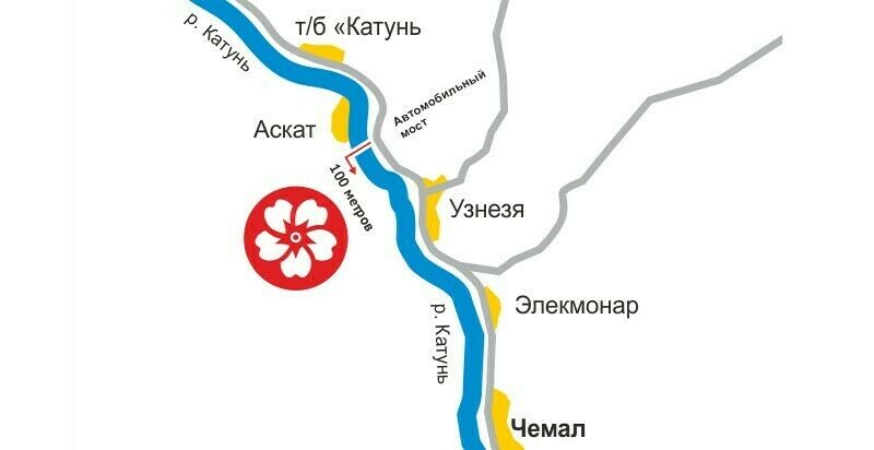 - Республика Алтай, Чемальский район, мост на с. Аскат, 100 метров в сторону с. Анос