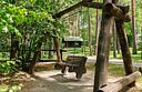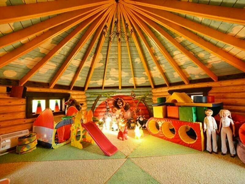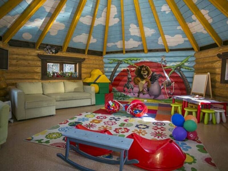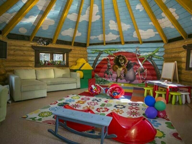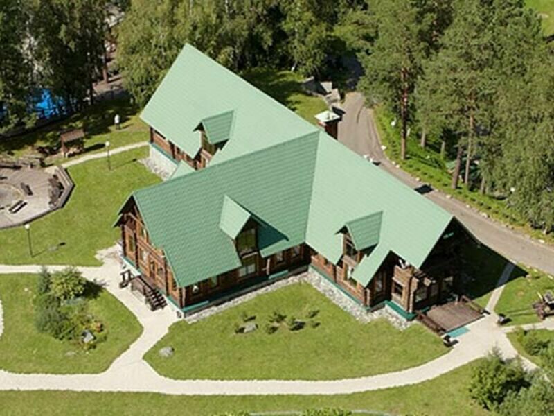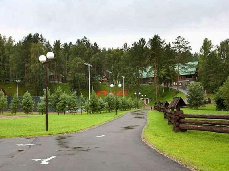 Территория базы находится в окружении леса и занимает немалую площадь в 22 га. Ее отличительной особенностью являются функциональность, продуманность в деталях и ухоженность. Здесь удалось разместить жилые корпуса, аквапарк, парк здоровья, медицинский блок, несколько бань, беседки и мангальные зоны, вертолетную площадку и многое другое. Все здания выполнены в едином русском стиле из натурального дерева и камня.