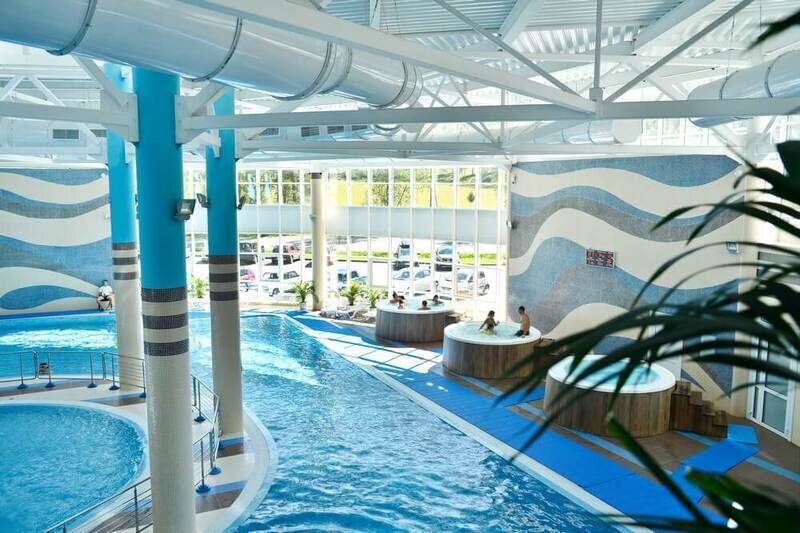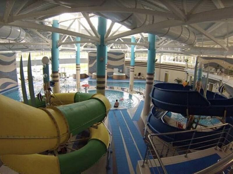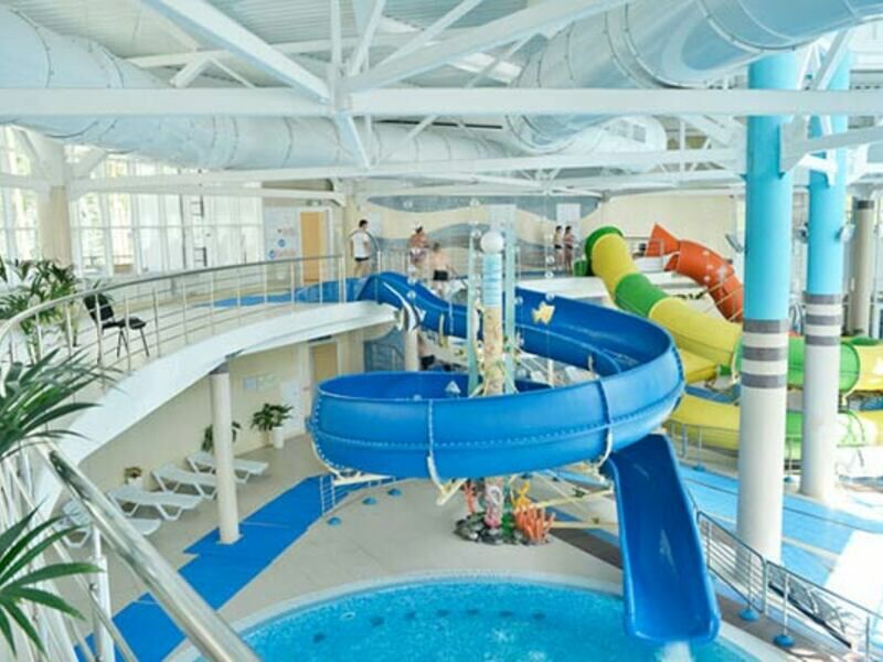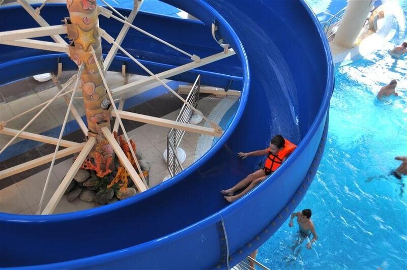 Но главные герои этого водного царства — три головокружительные горки для взрослых высотой 2,8 метра! Испытайте адреналин, съезжая по гигантской спиралевидной двухъярусной горке длиной 25 метров. После экстремальных спусков восстановите силы в гидромассажных ваннах или под освежающими массажными водопадами.