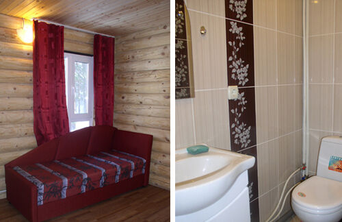 На территории есть двухэтажный коттедж со всеми удобствами, с бильярдом и сауной. А также двухэтажный деревянный дом с русской баней. Машину можно оставить на парковке, которая находится на территории.