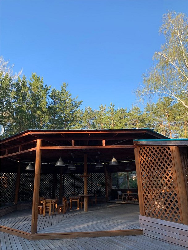 Инфраструктура: обливное ведроВы можете посетить настоящую Русскую баню на дровах, а после расслабиться в комфортной зоне отдыха и нырнуть в чистое озеро с пирса. Есть два тарифа.