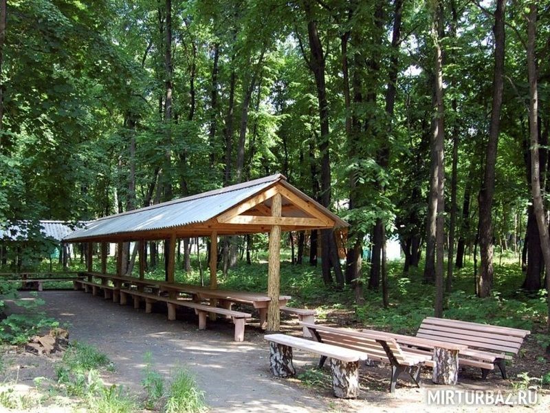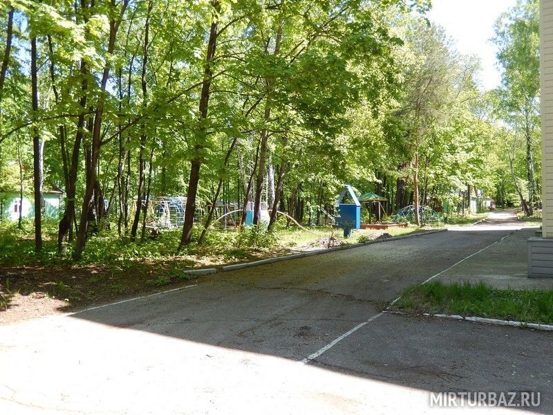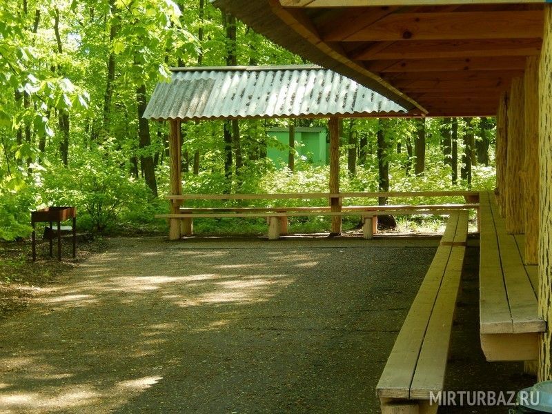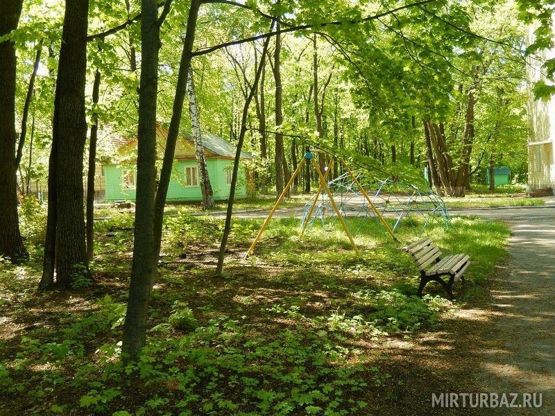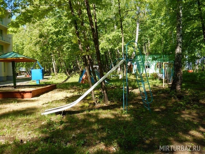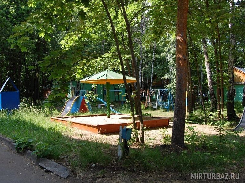 База отдыха оборудована детским игровым городком с различными активностями от песочница до горок и качелей.