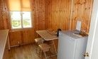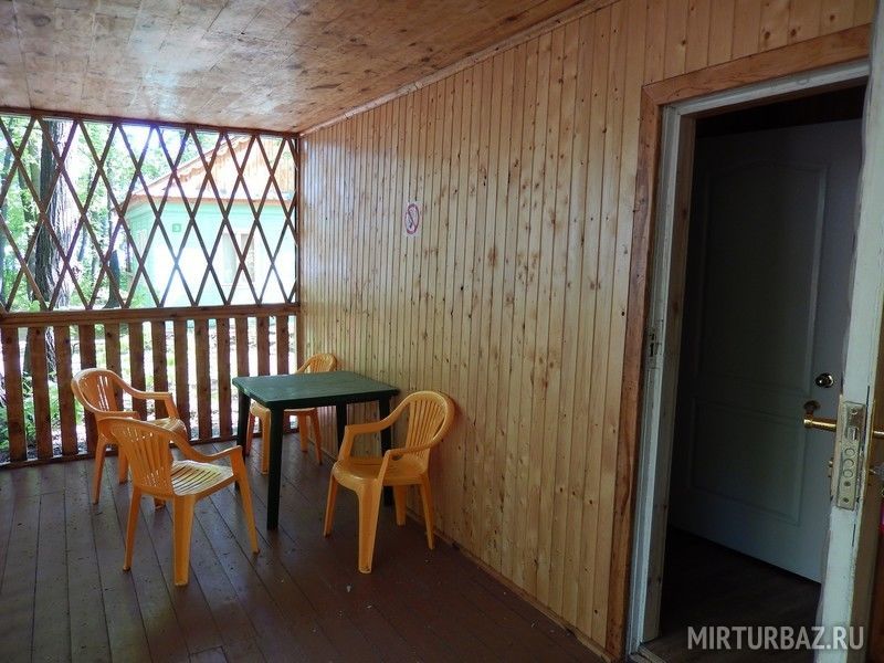 Домик оборудован туалетом, имеется душ и собственная кухня. У домика имеется просторная веранда.