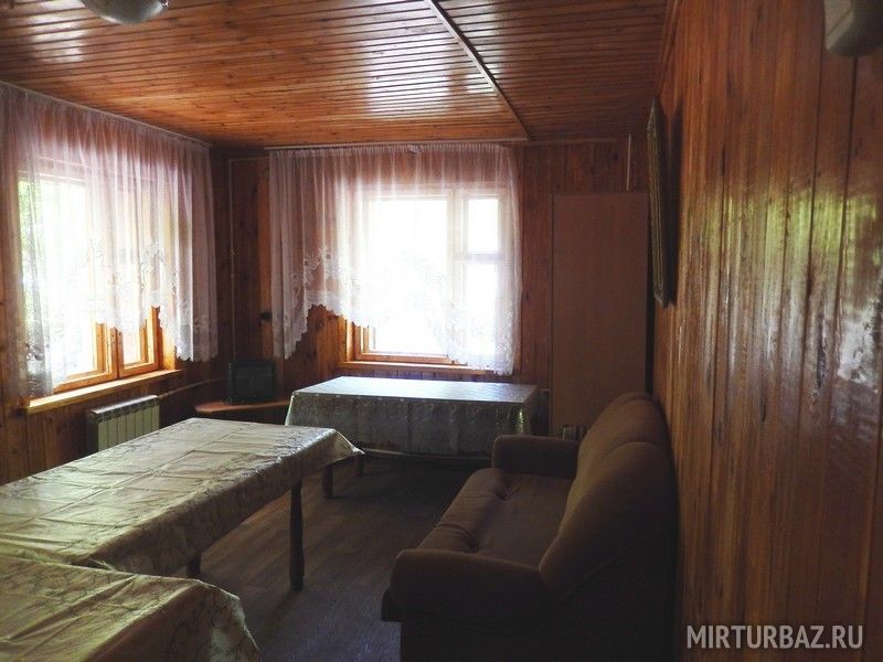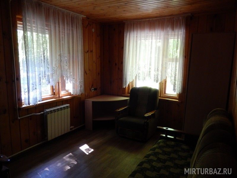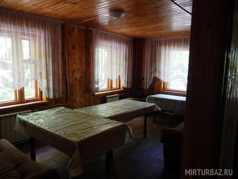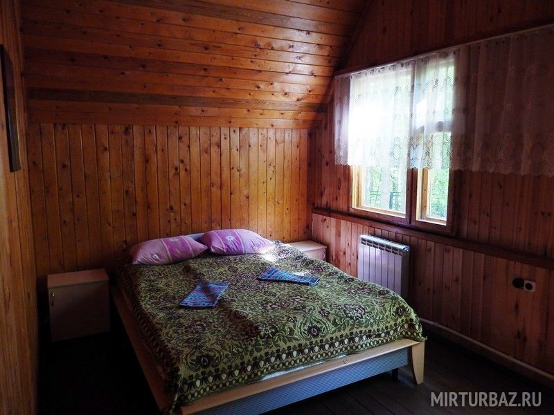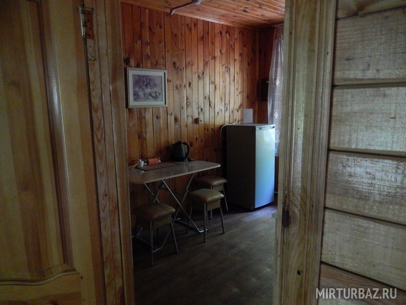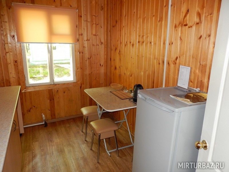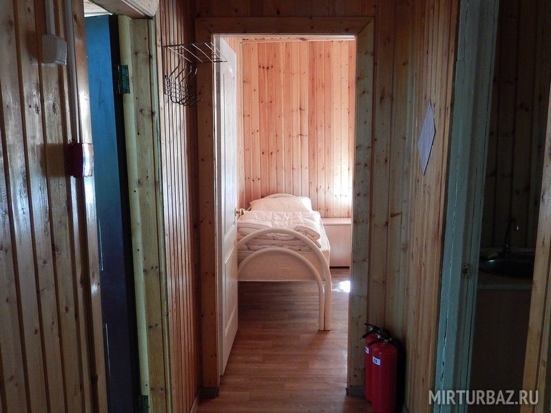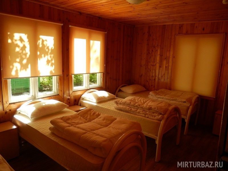 В домиках есть все необходимое — мини-кухня, душ и туалет, бесплатный Wi-Fi. Стоимость проживания на турбазе от 500 рублей в сутки за человека.