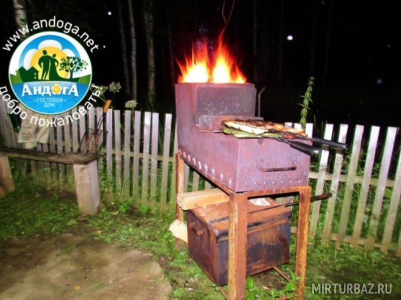 На территории Гостевого дома «Андога» расположена большая, закрытая беседка с мангалом на 30 посадочных мест.