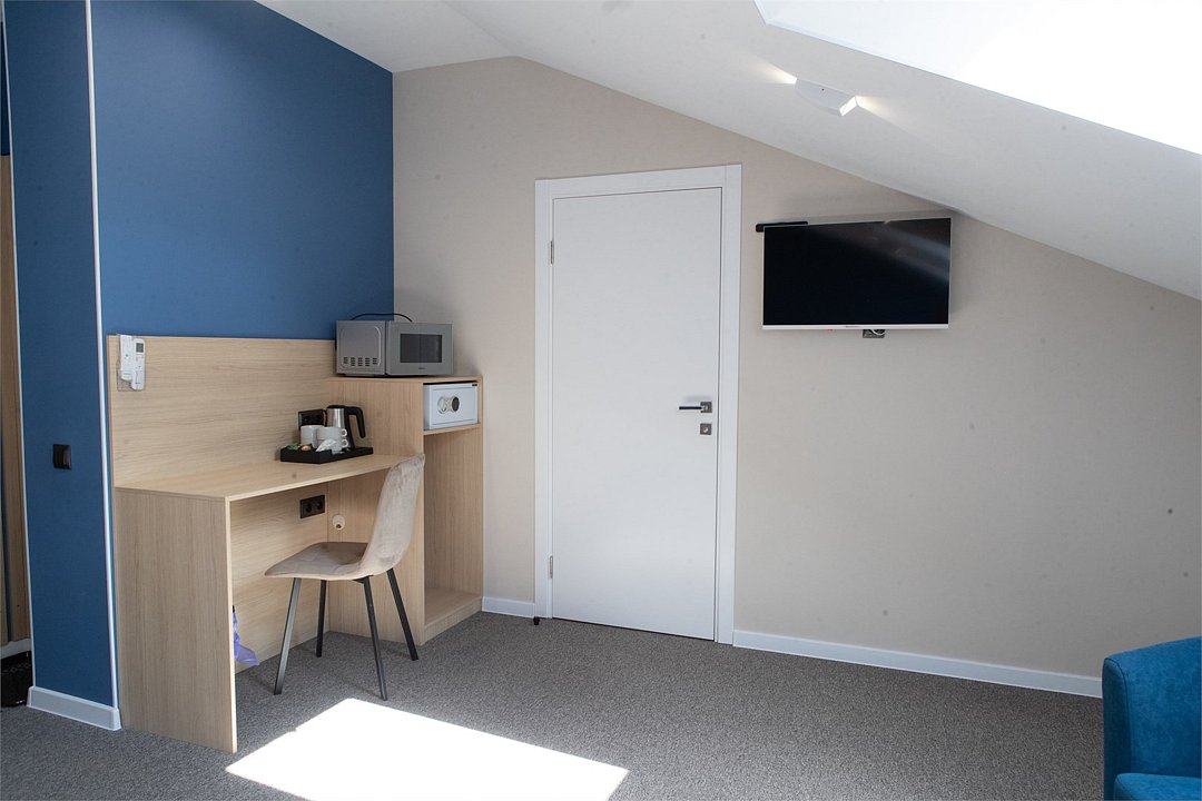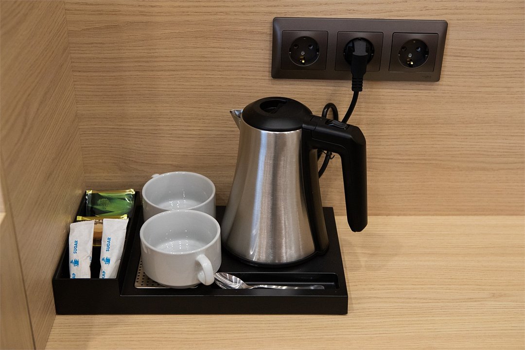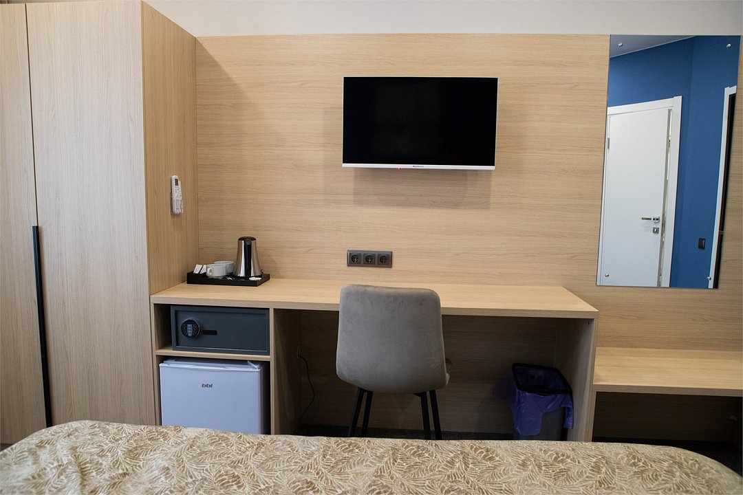 кабельное телевидение, интерактивное телевидение, Wi-Fi, кондиционер, светильник, фен, электронные замки, ванная комната, душевая кабина, тапочки, две односпальные или большая двуспальная кровать, вешалки, зеркало, чайный набор, набор посуды, сейф, чайник, унитаз, раковина, мягкая мебель, ковровое покрытие, отопление, душ, вид на город, стаканы, столовые приборы, стол, тумба, туалетные средства, туалет, телевизор с плоским экраном, мини-холодильник, номер для некурящих, чайная станция, уборка номера, набор для приготовления чая и кофе, частный двор, мыло, международная розетка, можно с питомцами, Android TVВ гостиничном номере