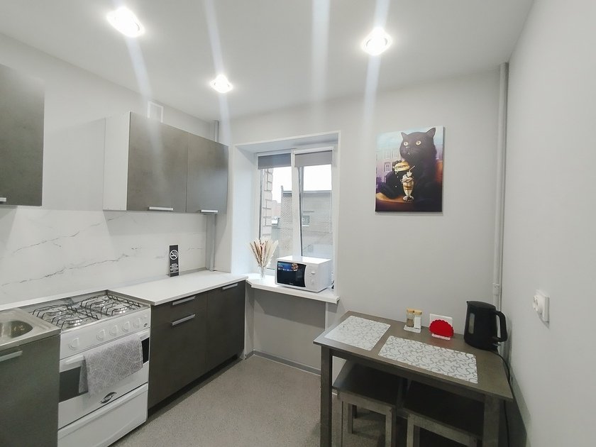 - асе необходимое уже есть в квартире (оборудованная кухня, посуда, все для приготовления еды, микроволновка, телевизор, WI-FI, телевидение, ванна/душ, утюг, гладильная доска).