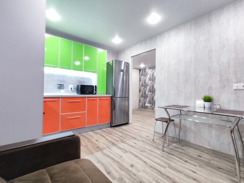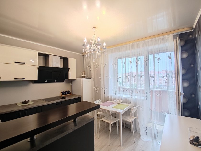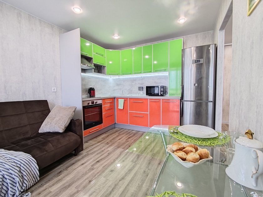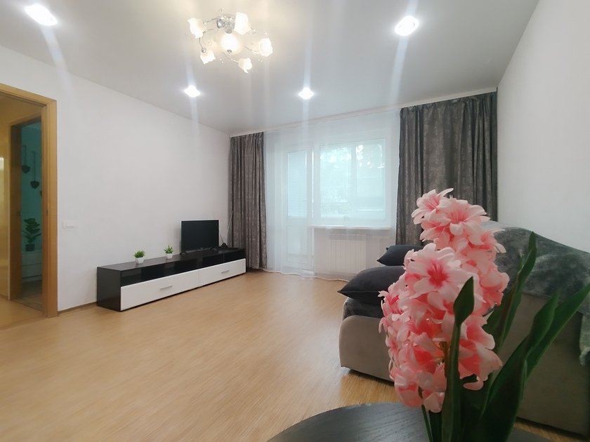 Удобный интерьер квартиры и современный дизайн - всё это создает обстановку, в которой Вы сможете почувствовать себя как дома в любое время года. Находится недалеко от аквапарка Радужный, Ледового Дворца, в шаговой доступности гипермаркеты, магазины, кинотеатр.