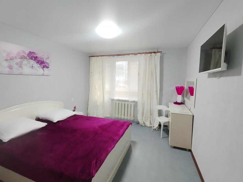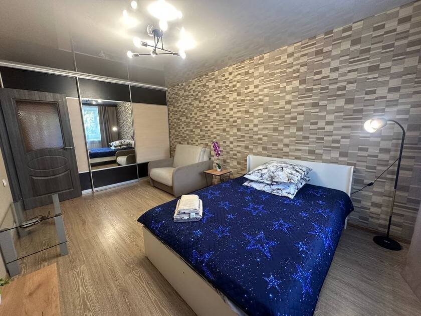В квартире имеются 4 спальных места, что позволяет разместиться группе из 4 человек. Квартира идеально подходит для романтических встреч, гостей города, командировочных и тех, кто ценит комфорт! Находится недалеко от аквапарка «Радужный», Ледового Дворца, в шаговой доступности гипермаркеты, магазины. В квартире есть все необходимое для проживания. Уборка, дезинфекция, смена постельного белья и полотенец после каждого гостя. Предоставляется постельное белье (всегда чистое, поглаженное), полотенца, одеяла и подушки, посуда, утюг.