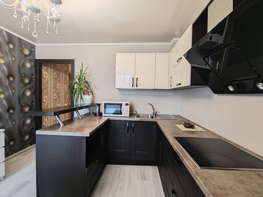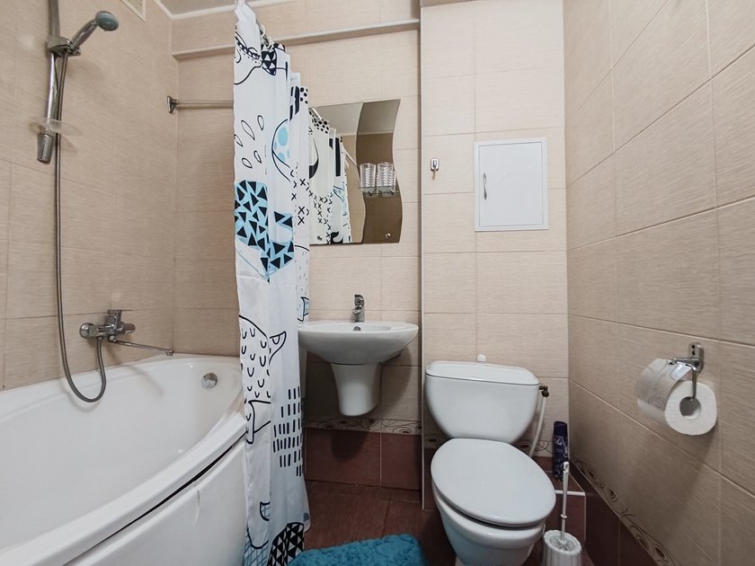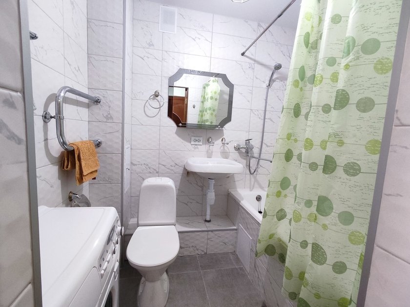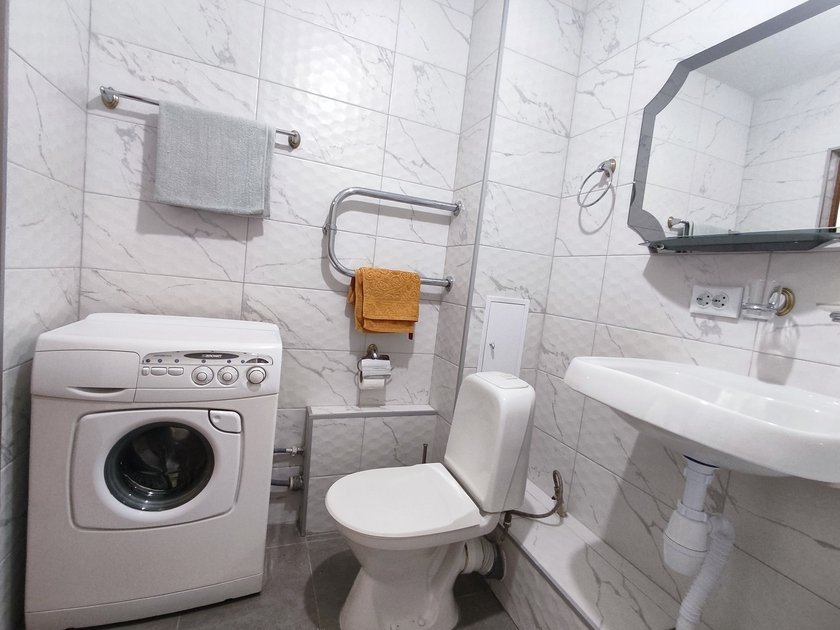 - все необходимое уже есть в квартире (оборудованная кухня, посуда, все для приготовления еды, микроволновка, телевизор, WI-FI, телевидение, ванна/душ, утюг, гладильная доска).