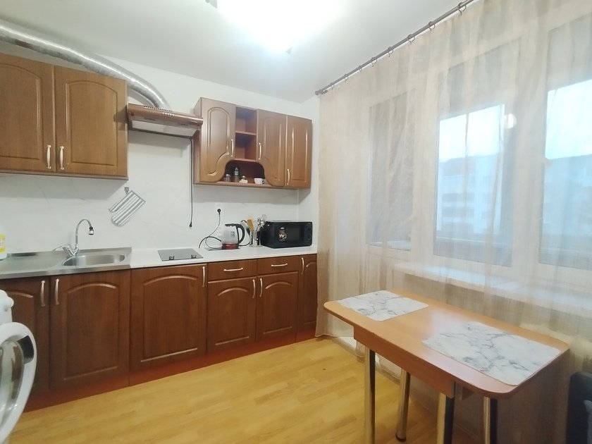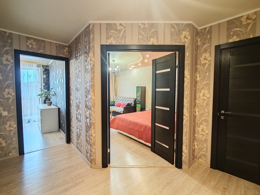 Квартира находится в спокойном, спальном микрорайоне города. В шаговой доступности супермаркет «Макси», магазины и кафе. Удобная транспортная доступность — недалеко остановки общественного транспорта.