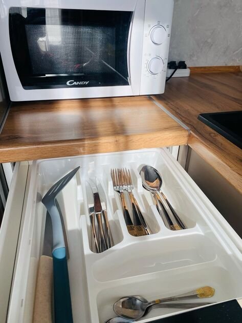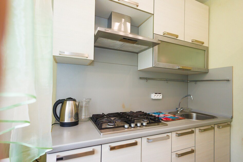 - плита, микроволновая печь, холодильник, посуда и столовые приборы;