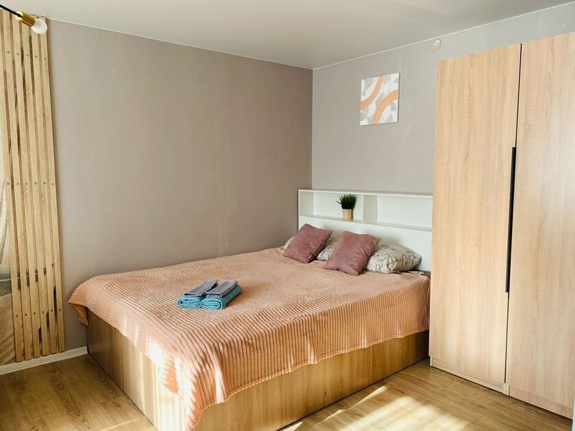 Уютная большая современная евродвушка посуточно со всем необходимым для командировки, семейного или романтического отдыха.