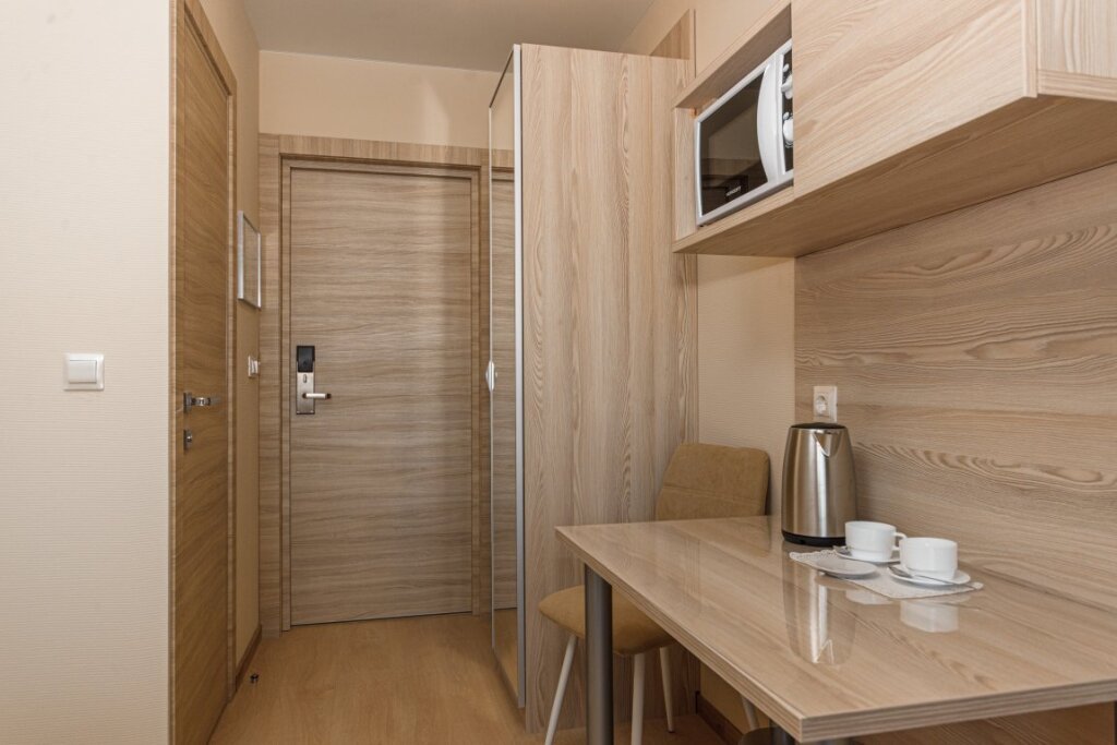 Чтобы вы могли отдохнуть после долгого дня, в номере есть телевизор. Оснащение зависит от выбранной категории номера.