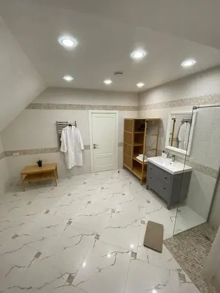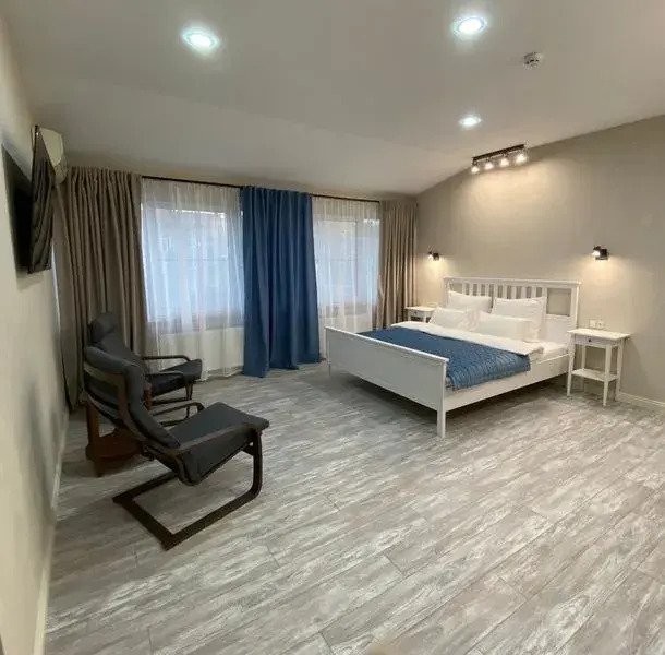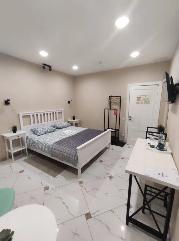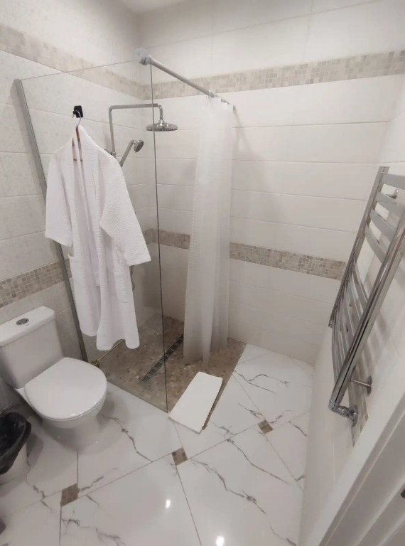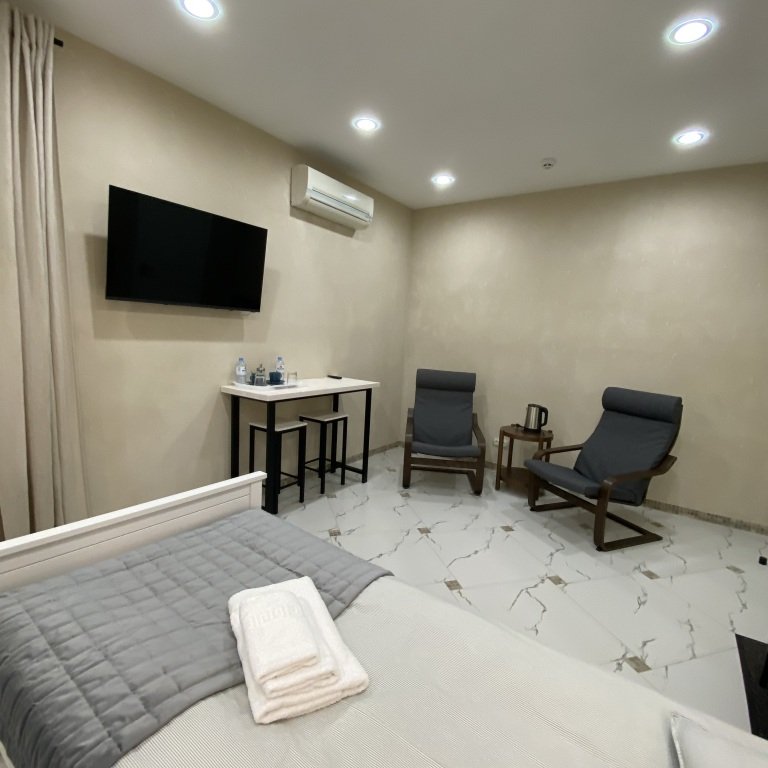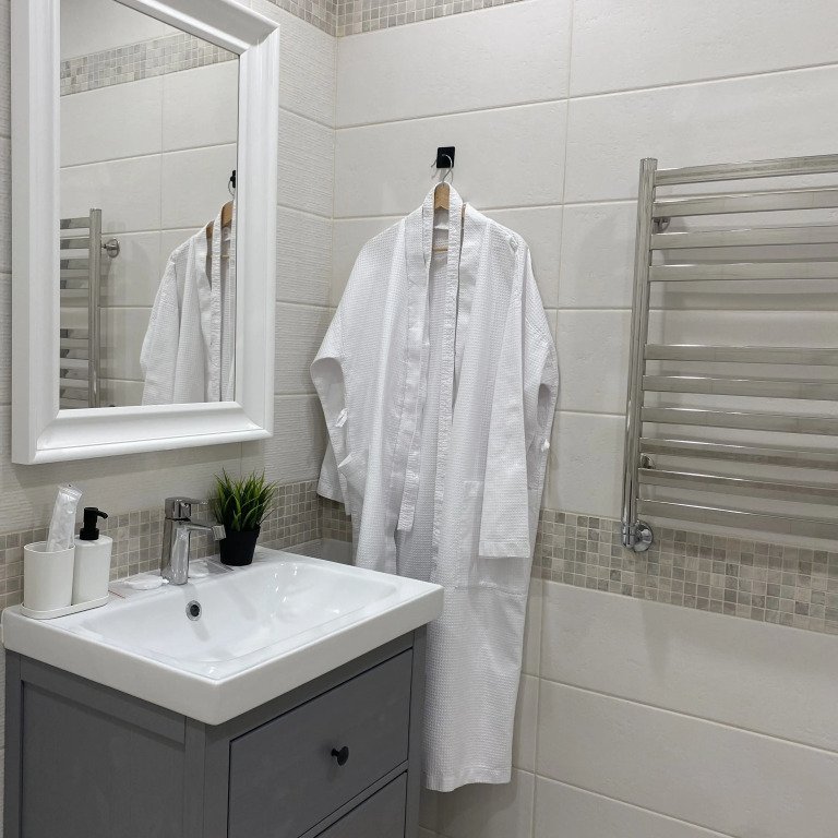 В номере есть телевизор и халат. Оснащение зависит от выбранной категории номера.
