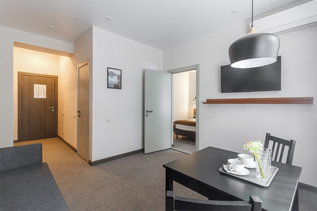 Просторный двухкомнатный номер 35 Км. позволит разместиться всей семьёй. Прекрасно подойдет для рабочей поездки с коллегами. Оборудован диваном и креслами. Завтрак. Халаты. Вода.Чай. Wi-Fi При размещении с детьми, мы предусмотрели все детали и сделаем ваш отдых максимально комфортным, предоставим Вам: - ящик с игрушками - сказки, настольные игры, - раскраски и карандаши, - игровая приставка с джойстиками.Услуги и удобства