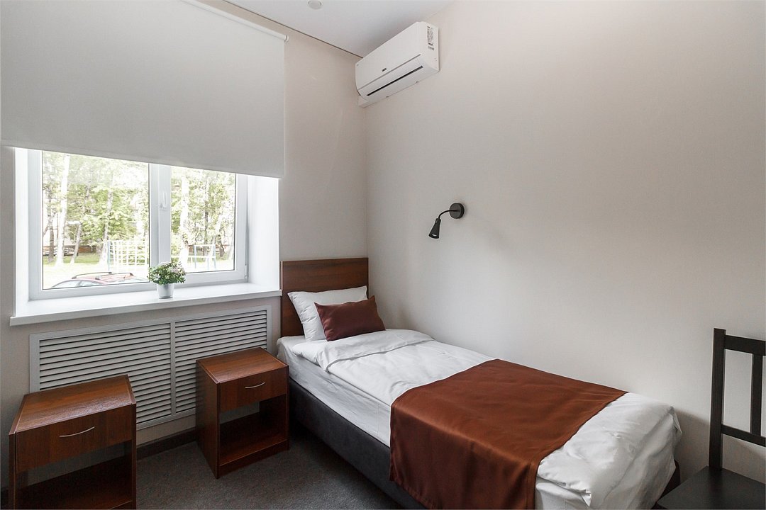 Wi-Fi, кондиционер, светильник, фен, банные полотенца, тапочки, две полутораспальные кровати, тумбы, стулья, вешалки, сейф, ковровое покрытие, душ, кулер на этаже, вид во двор, высокие потолки, стол, цифровое тв, мини-холодильник, шкаф-купе, гостиничная парфюмерияВ номере