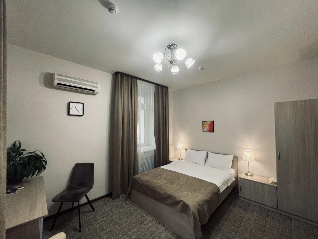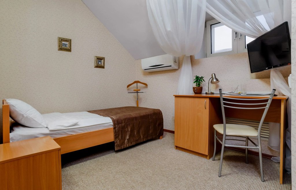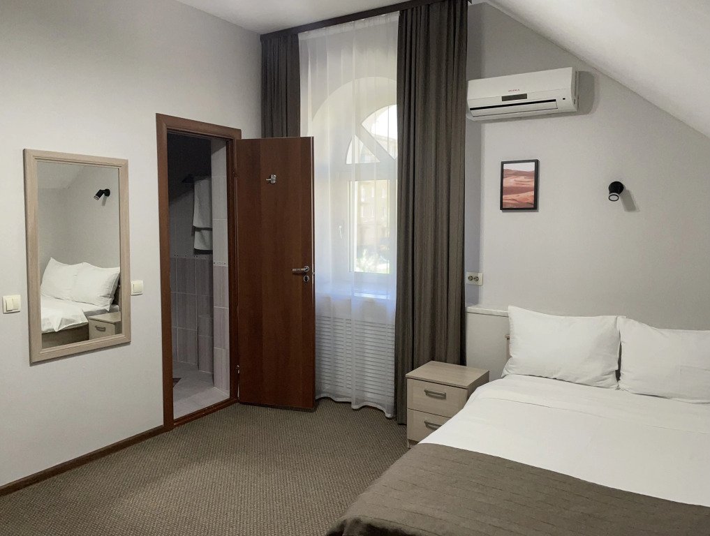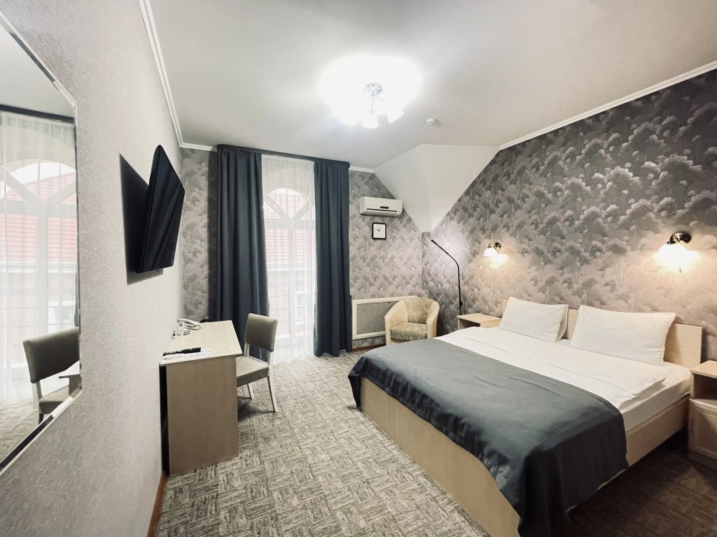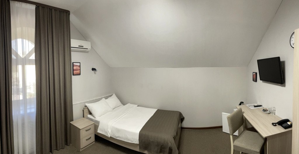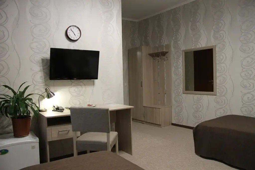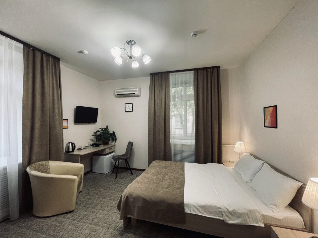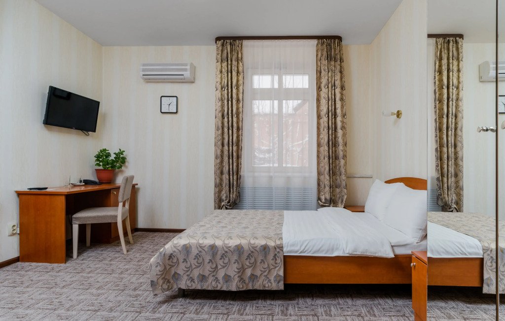 Номер уютно обставлен и оснащён необходимым, чтобы отдохнуть после долгого и насыщенного дня. Имеются телевизор и халат. Оснащение зависит от выбранной категории номера.