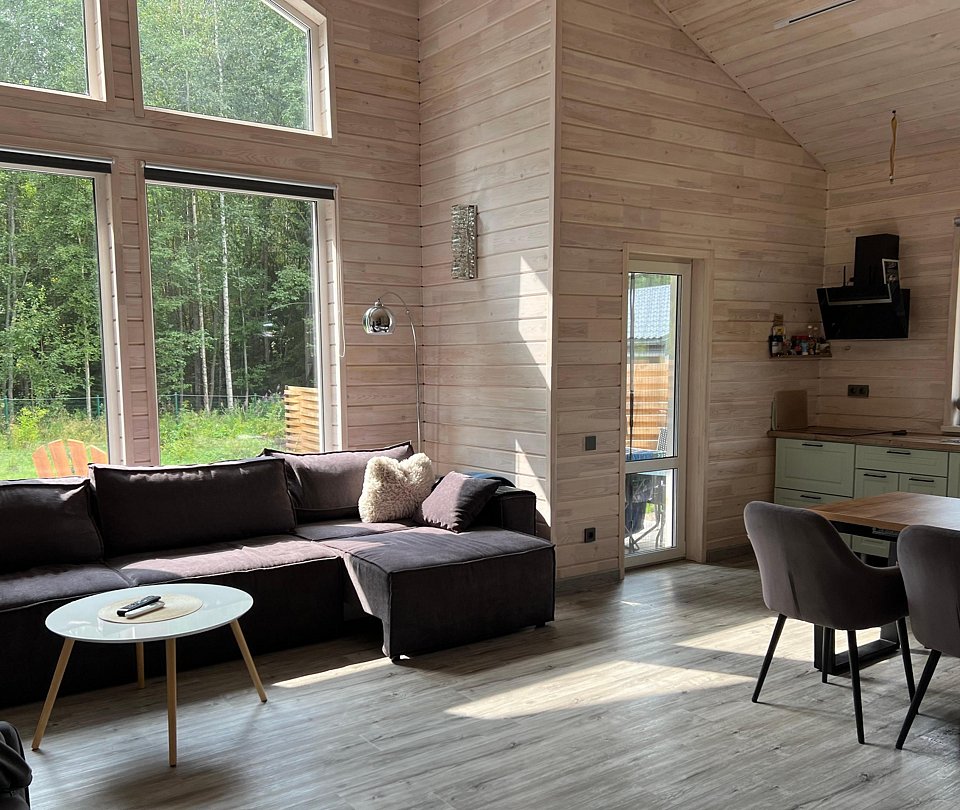 Загородный дом с панорамными окнами на лес, вторым светом и финской сауной недалеко от средневекового Выборга - это место спокойствия и вдохновения, куда можно уйти от суеты городской жизни и насладиться красотой природы. Идеальное расположение дома у леса позволяет наслаждаться уединением и гармонией, пробуждаясь под пение птиц и шум листвы.