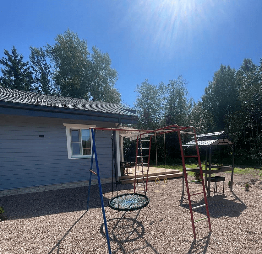 Дом с террасой, оснащённой уличной мебелью и мангалом. Финская сауна с отдельным выходом на террасу.