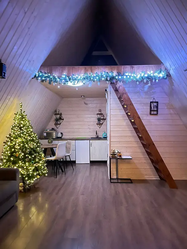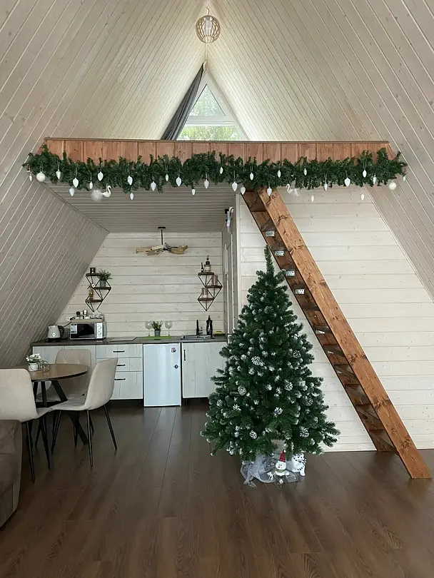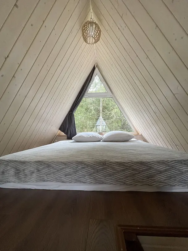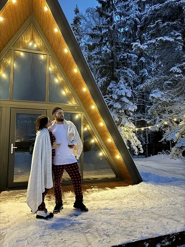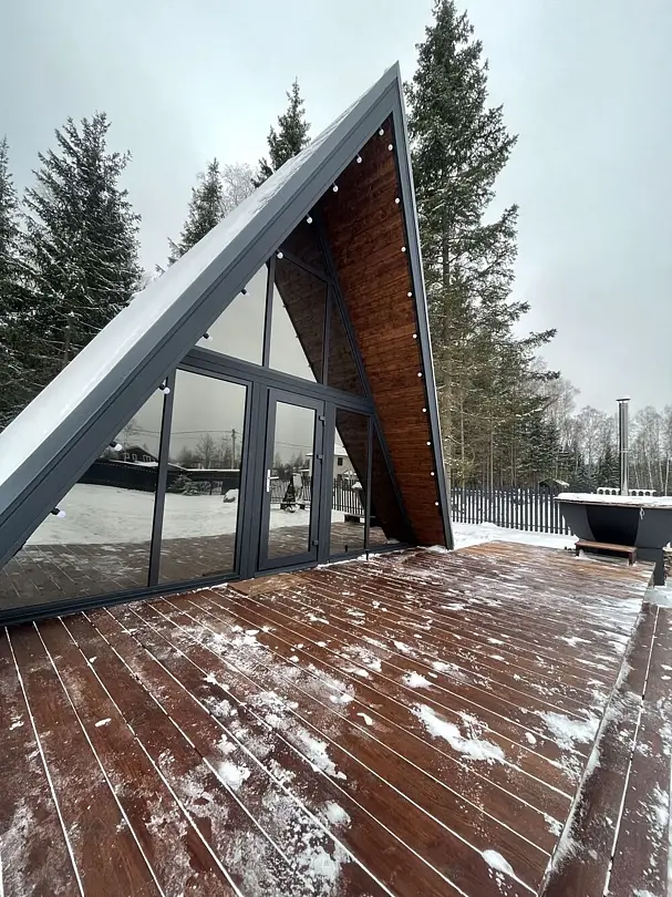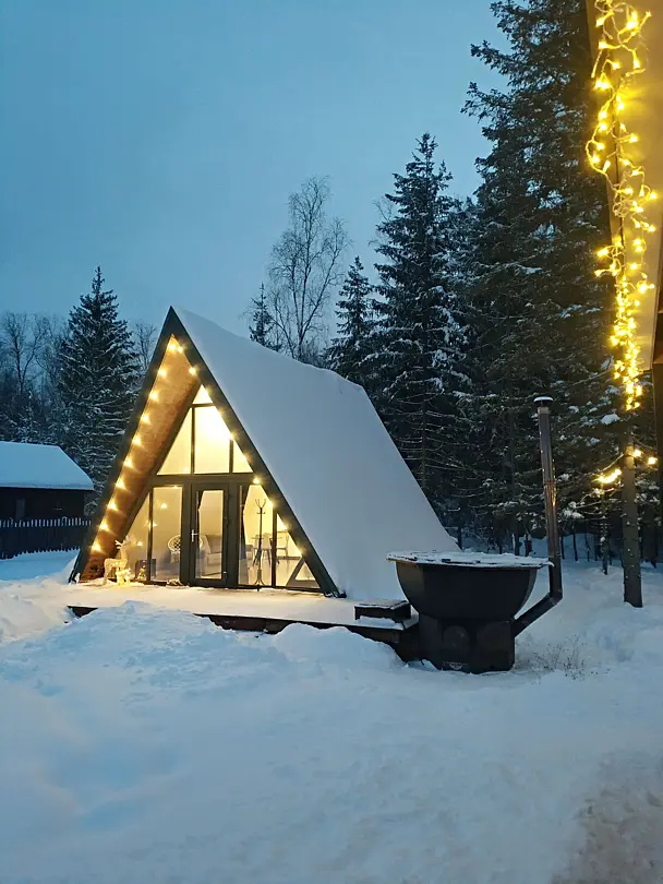 Это по-настоящему атмосферное и уютное место, окруженное вековым лесом и чистейшим воздухом. Оно идеально подходит для тех, кто хочет провести время наедине, устроить романтический вечер или отдохнуть с семьей. Стильный A-FRAME создан для вашего комфортного отдыха и красивых фотографий.
