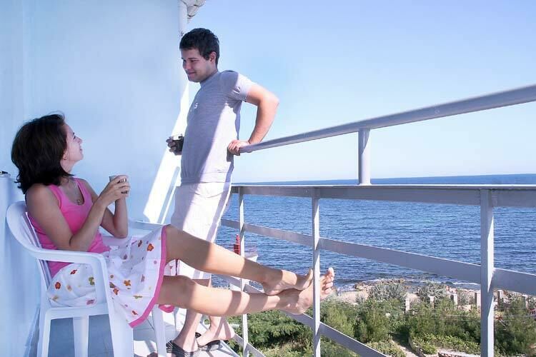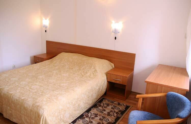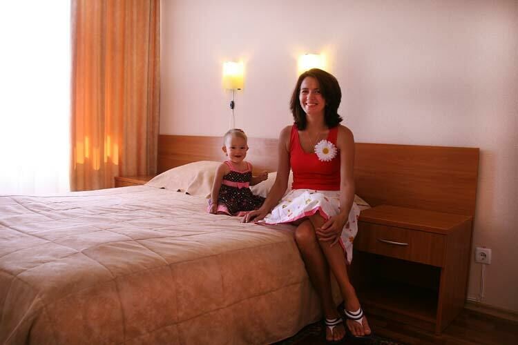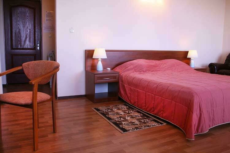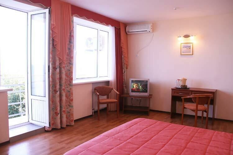 В номере: две односпальные или одна двуспальная кровати, 2 прикроватные тумбы, стул, шкаф и тумба для обуви, холодильник, кондиционер и спутниковое ТВ, Wi-Fi, балкон