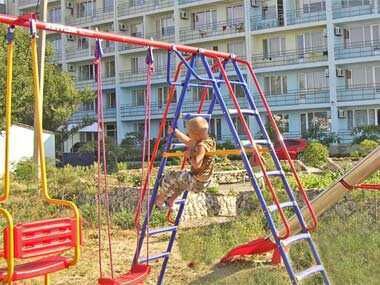 На залитой солнцем площадке с потрясающим панорамным видом на море в окружении благоухающих клумб располагается детская игровая площадка. Для малышей здесь оборудованы игровые снаряды – горка, лестницы, подвесные качели, качели на перевес. Все снаряды прочные, устойчивые, безопасные. В этом месте в отельном комплексе часто организовываются развлекательные мероприятия, детские праздники.