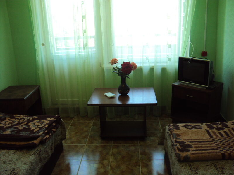 Корпус гостиницы включает три этажа. Территория красивая и ухоженная. До берега пешком можно дойти буквально за пару минут. Всего заведение может одновременно принять 150 человека. Номера разного класса: бюджетные, в которых душевые общие, и стандартные. Последние оснащены отдельными ванными комнатами и балконами, а также всей необходимой для комфортного проживания бытовой техникой.