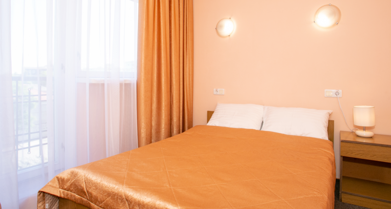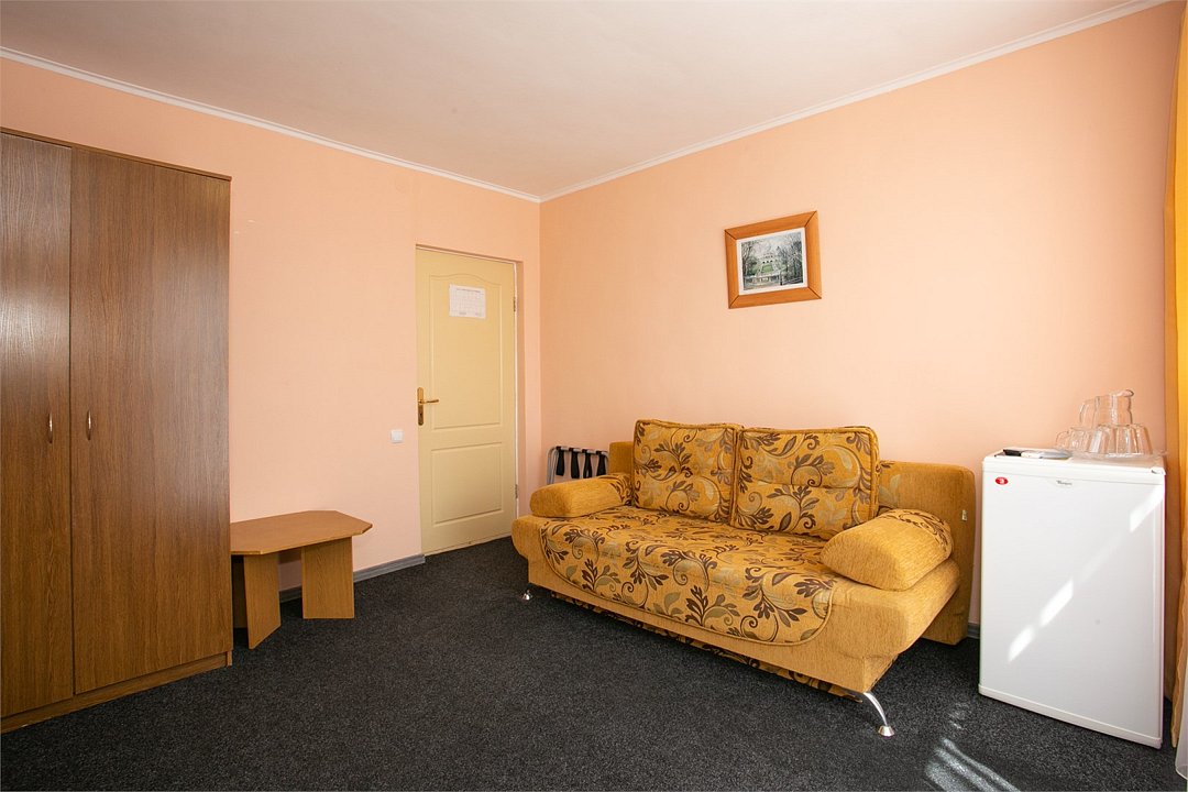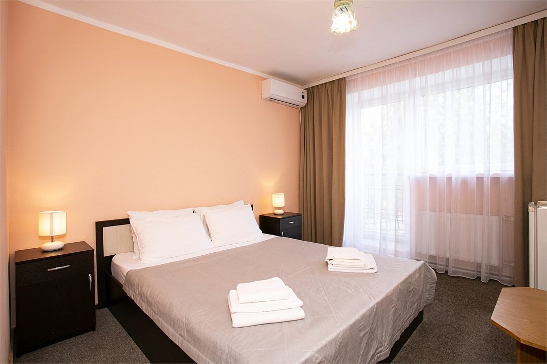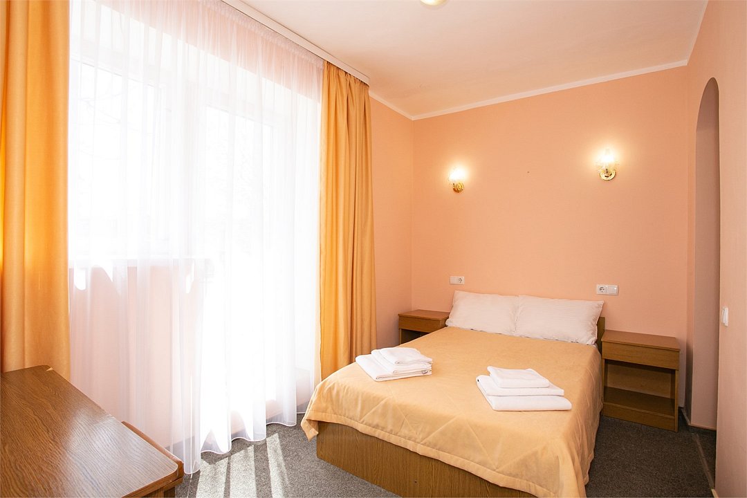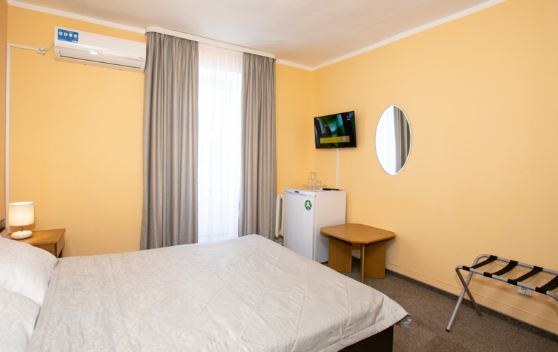 Интерьер номеров выполнен в спокойной цветовой гамме, располагающей к отдыху. Из окон открывается вид на уютный зелёный дворик и внутреннюю территорию. Среди удобств комфортабельная мебель, кондиционер, холодильник,