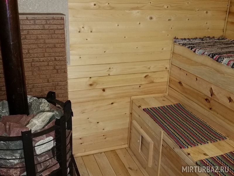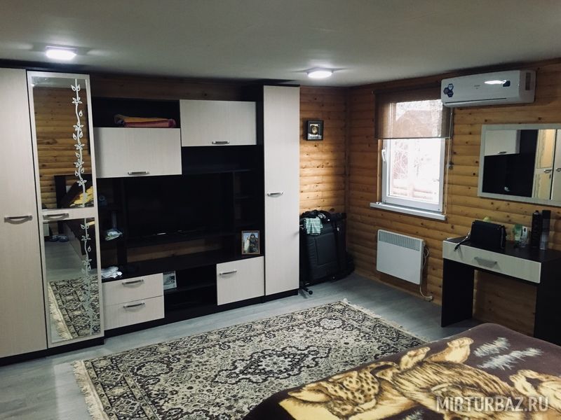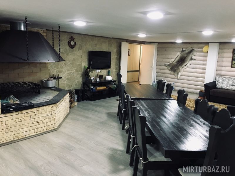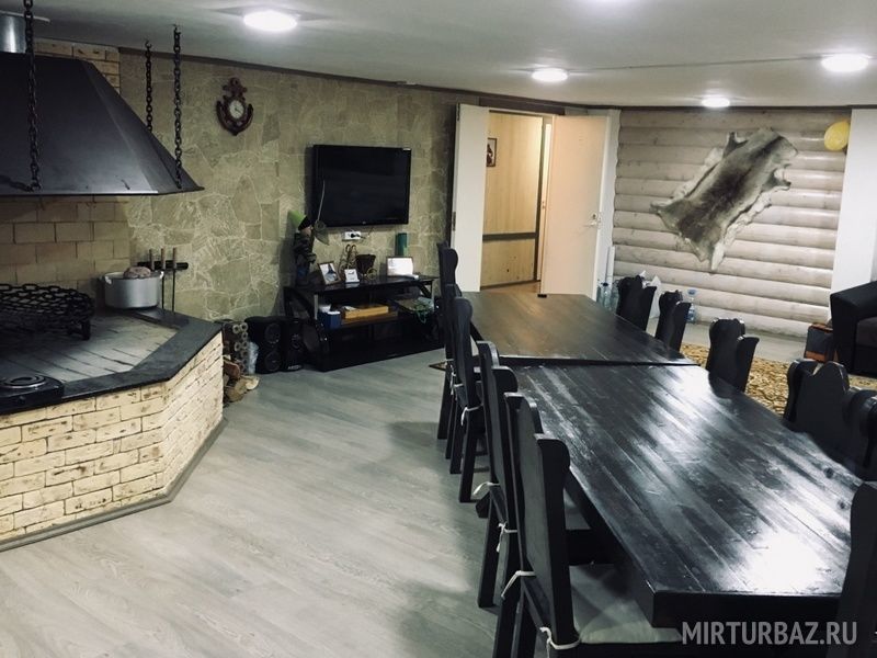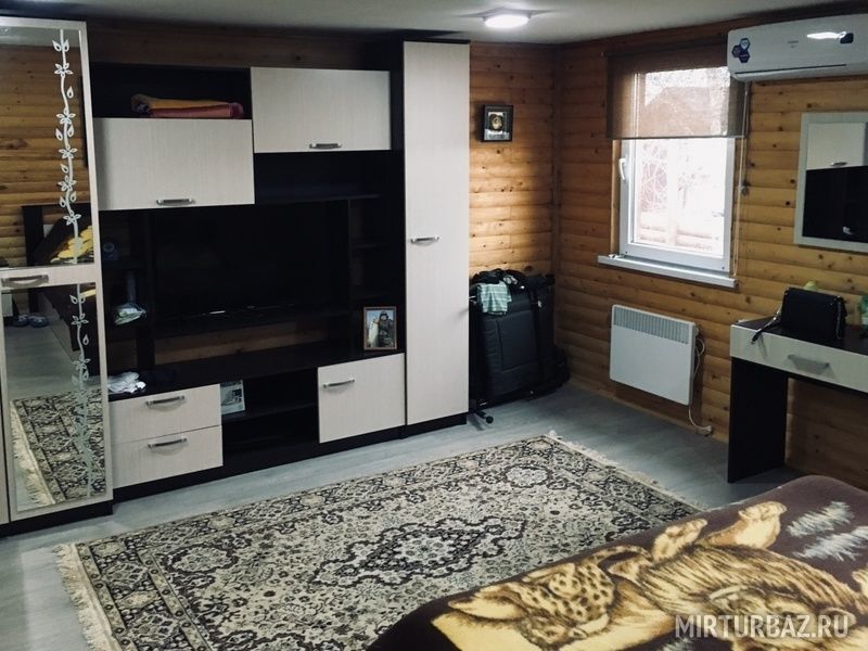 В конце дома находится большая русская баня на дровах, с предбанником с телевизором, столом, всеми банными принадлежностями, душем со стиральной машиной и т.д.