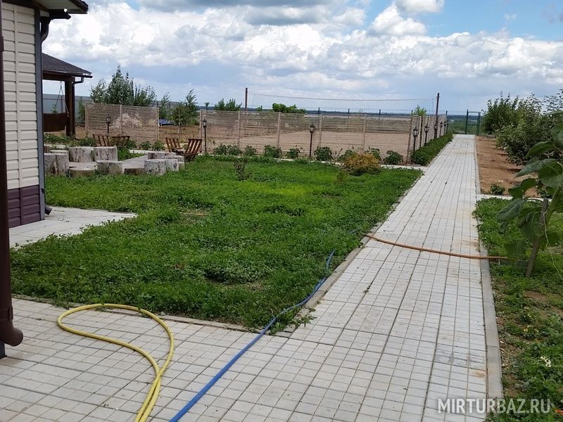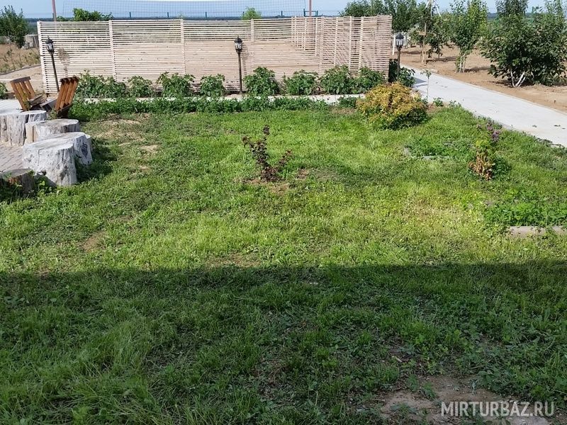 Дом отдыха имеет территорию 26 соток, огороженную забором, с выходом к обрыву. По всей территории обустроены широкие дорожки из тротуарной плитки, имеется 100 плодовых деревьев, видеонаблюдение, освещение и все необходимое. Территория охраняется круглосуточно.