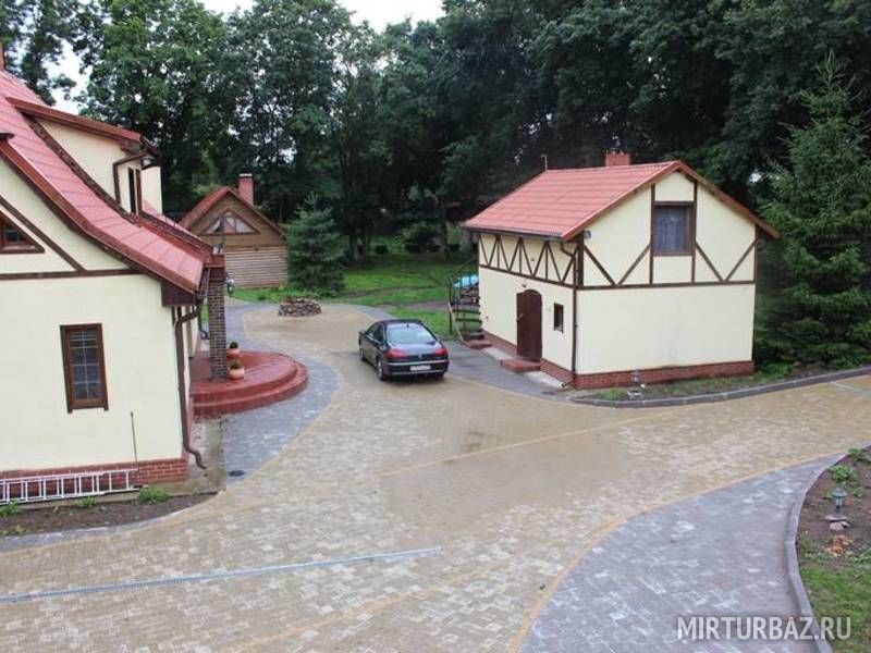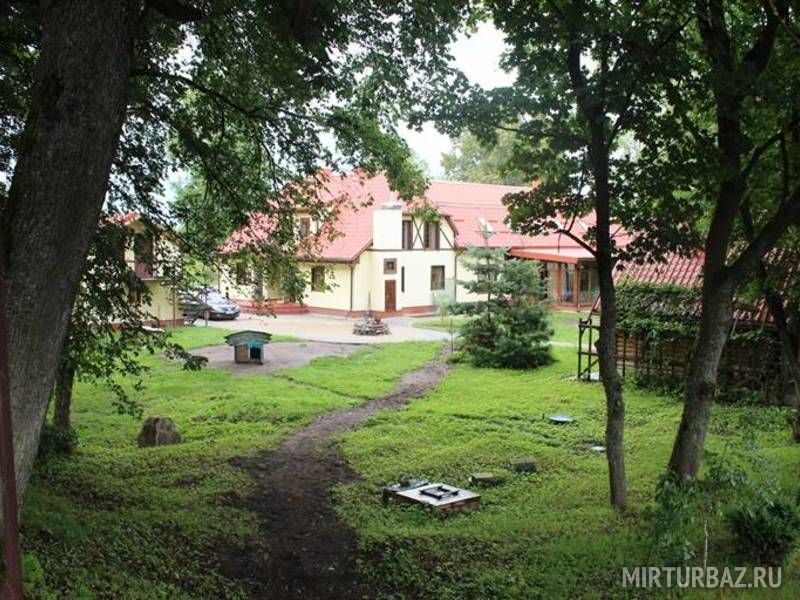 Отель находится на острове в долине речки Преголя. Вокруг него расположено множество живописных озер. Коттедж был восстановлен из старинного немецкого сооружения. Рядом имеется старинный восточно-прусский мост, который является изюминкой базы.