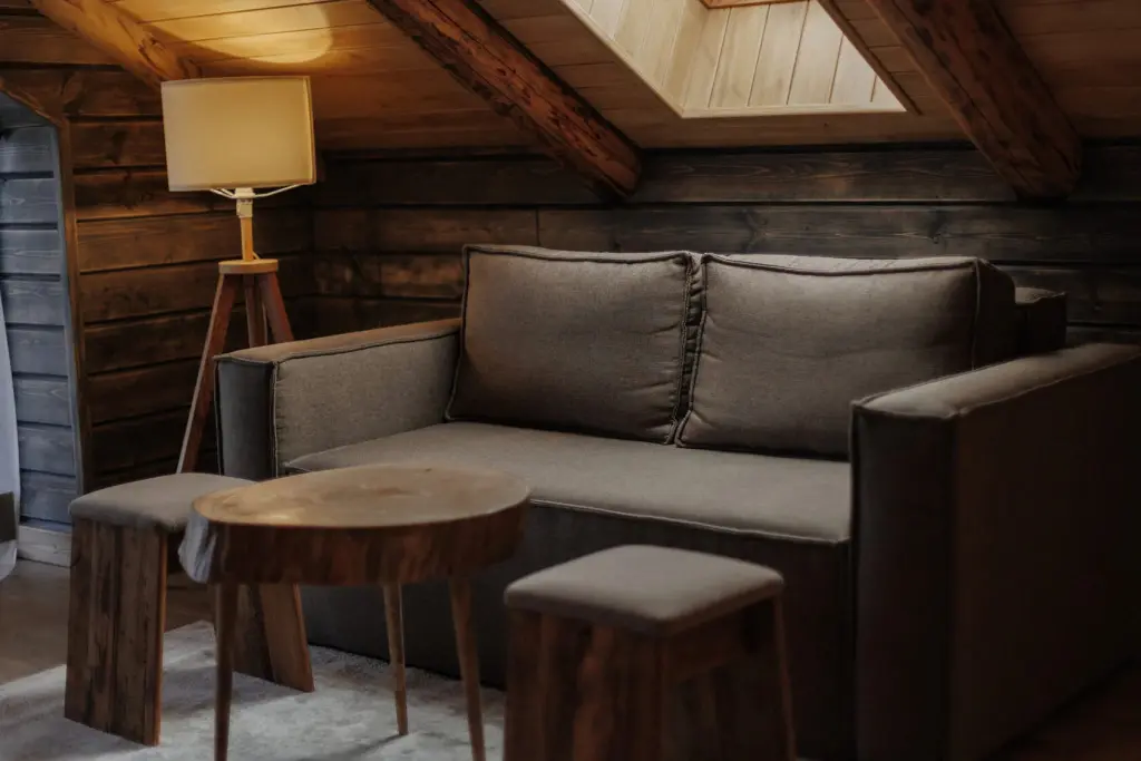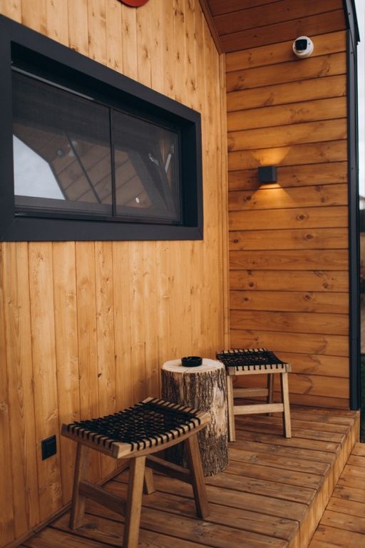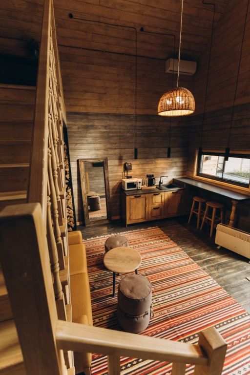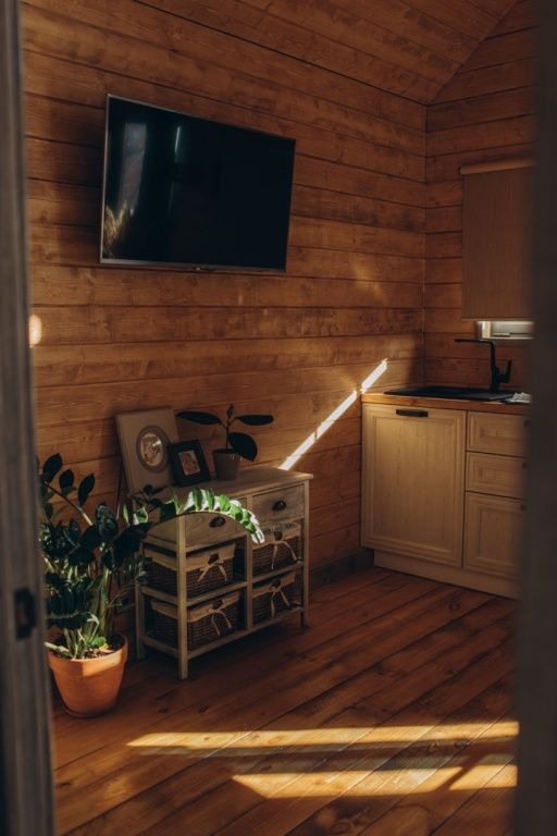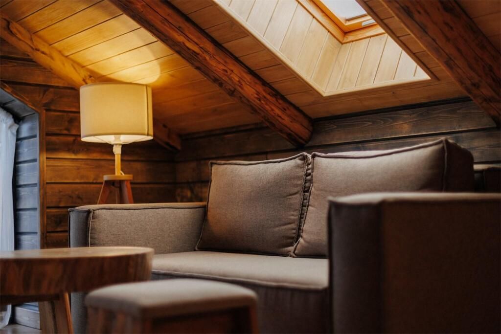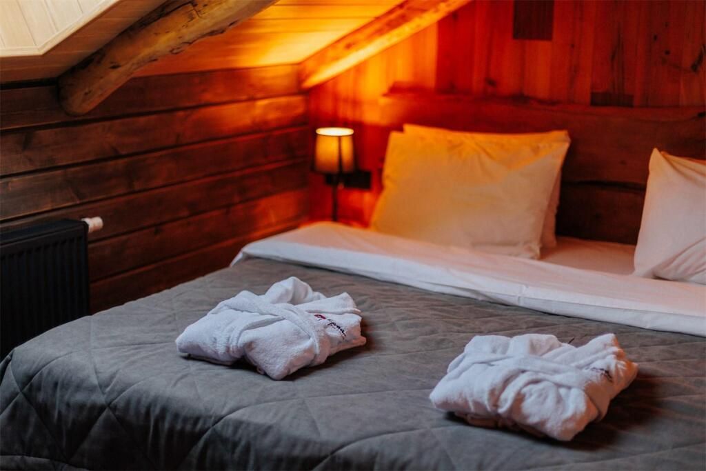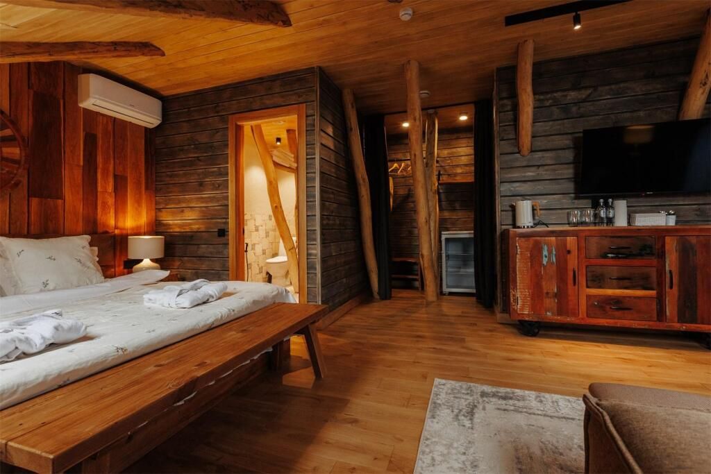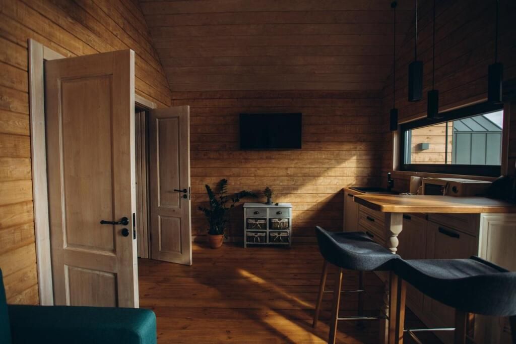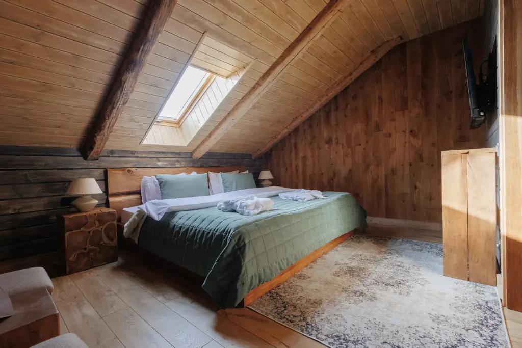 Современный оборудованный номер, выполненный в эко- классическом стиле располагается в гостевом доме "Гранд Шале". Имеет отельный вход и вид во дв