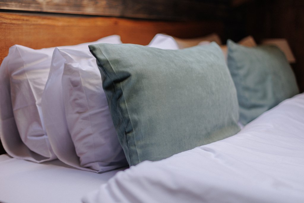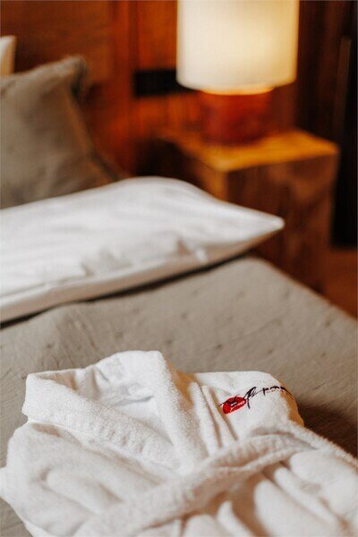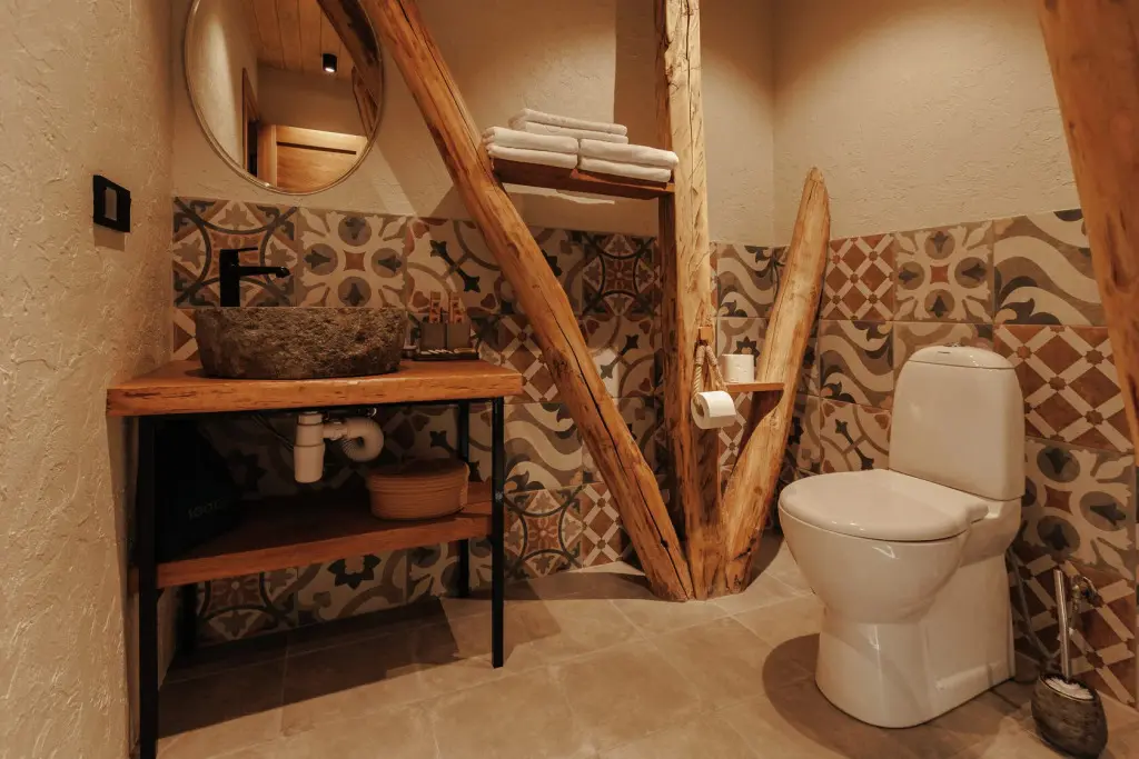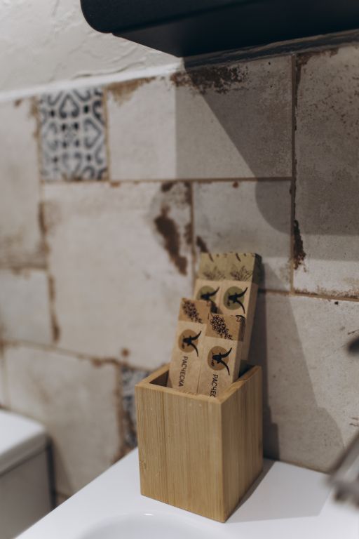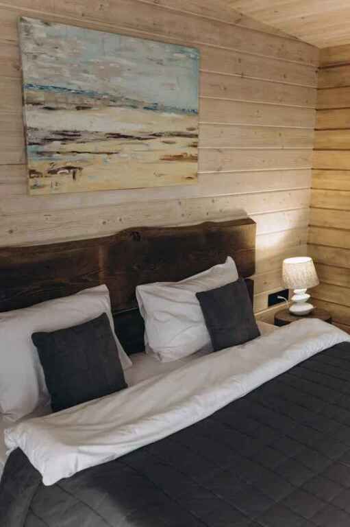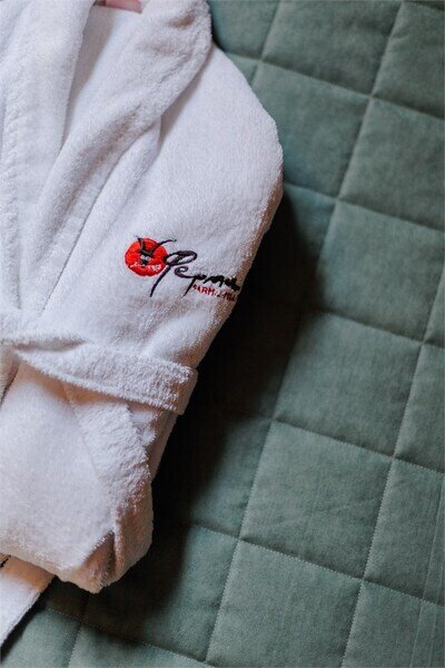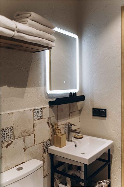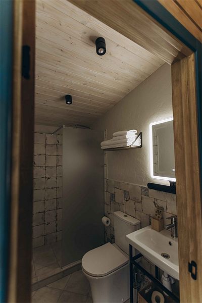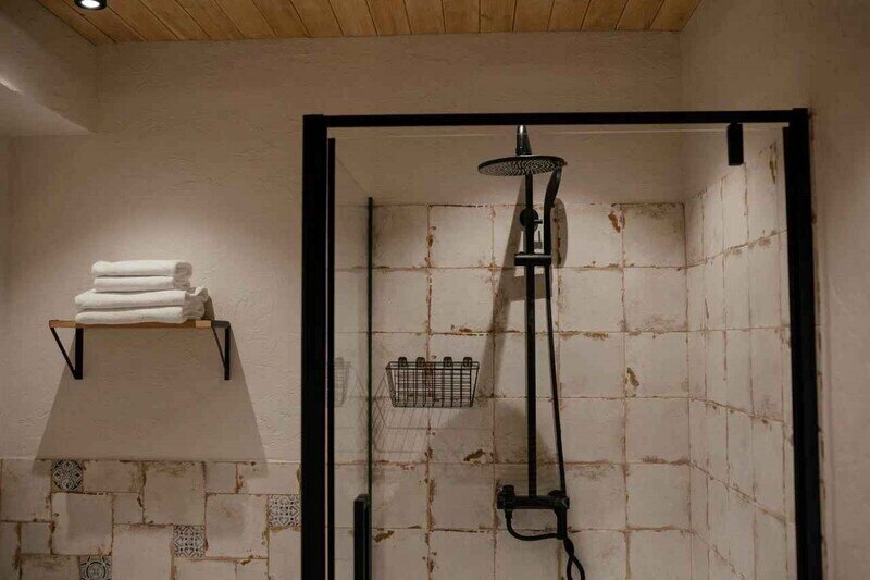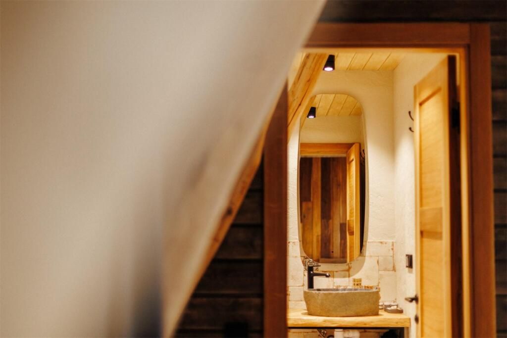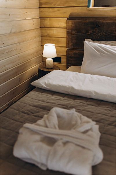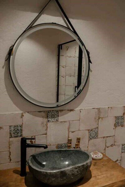 Важным аспектом стало сочетание натуральных, естественных текстур и фактур. Мебель и оформление номеров мы подбирали у локальных ремесленников, ведь именно предметы, сделанные руками создают неповторимую атмосферу. Полы из массива дуба, сантехника их натурального камня, подушки и постельное бельё из жатого льна и хлопка, расшитое вручную.